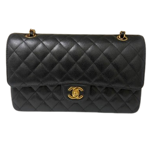 シャネル マトラッセ ダブルフラップ チェーンショルダーバッグ ブラック キャビアスキン A01112