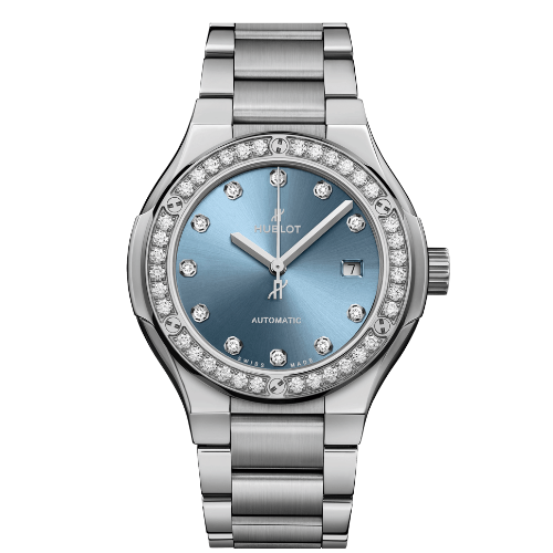 ウブロ クラシック・フュージョン チタニウム ライトブルー ダイヤモンド ブレスレット