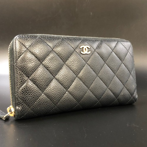 シャネル キャビアスキン マトラッセ ラウンドファスナー 長財布 ブラック 20番