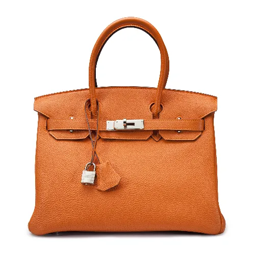 エルメス バーキン30 ハンドバッグ トゴ オレンジ シルバー金具 T刻印