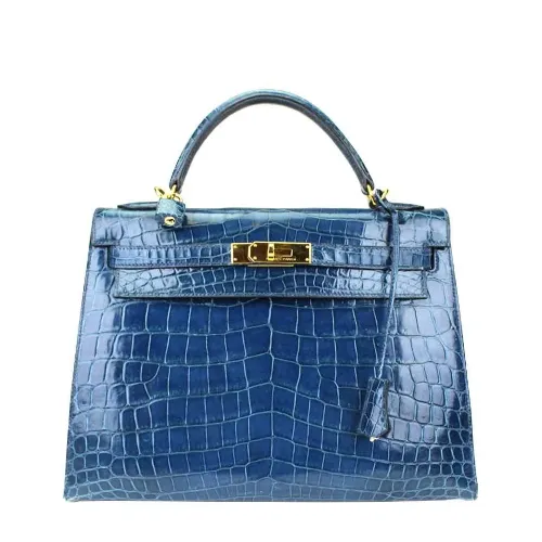 エルメス ケリー32 ハンドバッグ ニロティカス ブルー シルバー金具 □G刻印