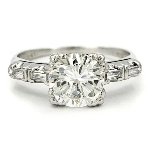 宝石 ダイヤモンド エンゲージメント リング 1.00ct ラウンドブリリアント/バケット
