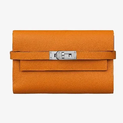 エルメス ケリーウォレット エプソン オレンジ シルバー金具
