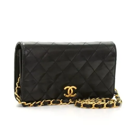 シャネル マトラッセ チェーン ショルダー バッグ レザー ブラック ゴールド 金具