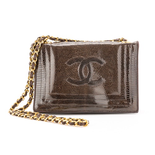 シャネル リザード チェーンショルダー ブラウン