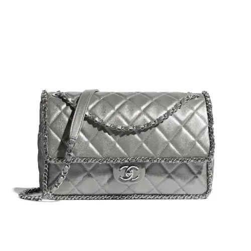 シャネル マトラッセ ラージ フラップ バッグ メタリック カーフスキン シルバー